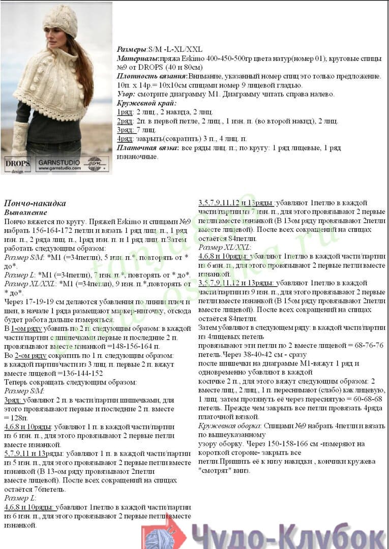 Схемы и описания,узоры к модели Пончо-накидка нарукавники шапочка