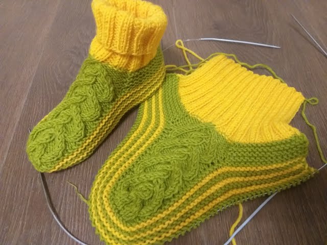 СЕРДЕЧНЫЕ ТАПОЧКИ-НОСОЧКИ НА 2 СПИЦАХ. Вяжем вместе.