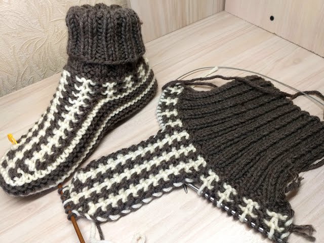 ТАПОЧКИ-НОСКИ на 2 спицах. Вяжем вместе.